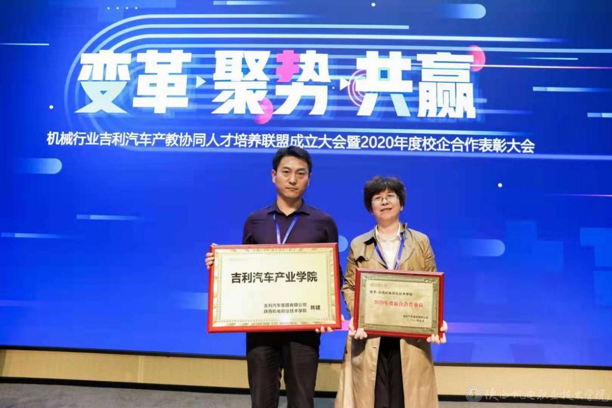 5月25日-27日,机械行业吉利汽车产教协同人才培养联盟暨2020年校企合作表彰大会在宁波杭州湾隆重举行。会上,吉利集团授予英国365“2020年度吉利汽车最佳合作单位”荣誉称号,颁发西北首家“吉利汽车产业学院”荣誉牌,也是陕西省合作单位中唯一获此殊荣的学校,同时获赠两台实训车。副院长徐圣月,招生就业处就业科科长李英儒受邀参加本次大会。