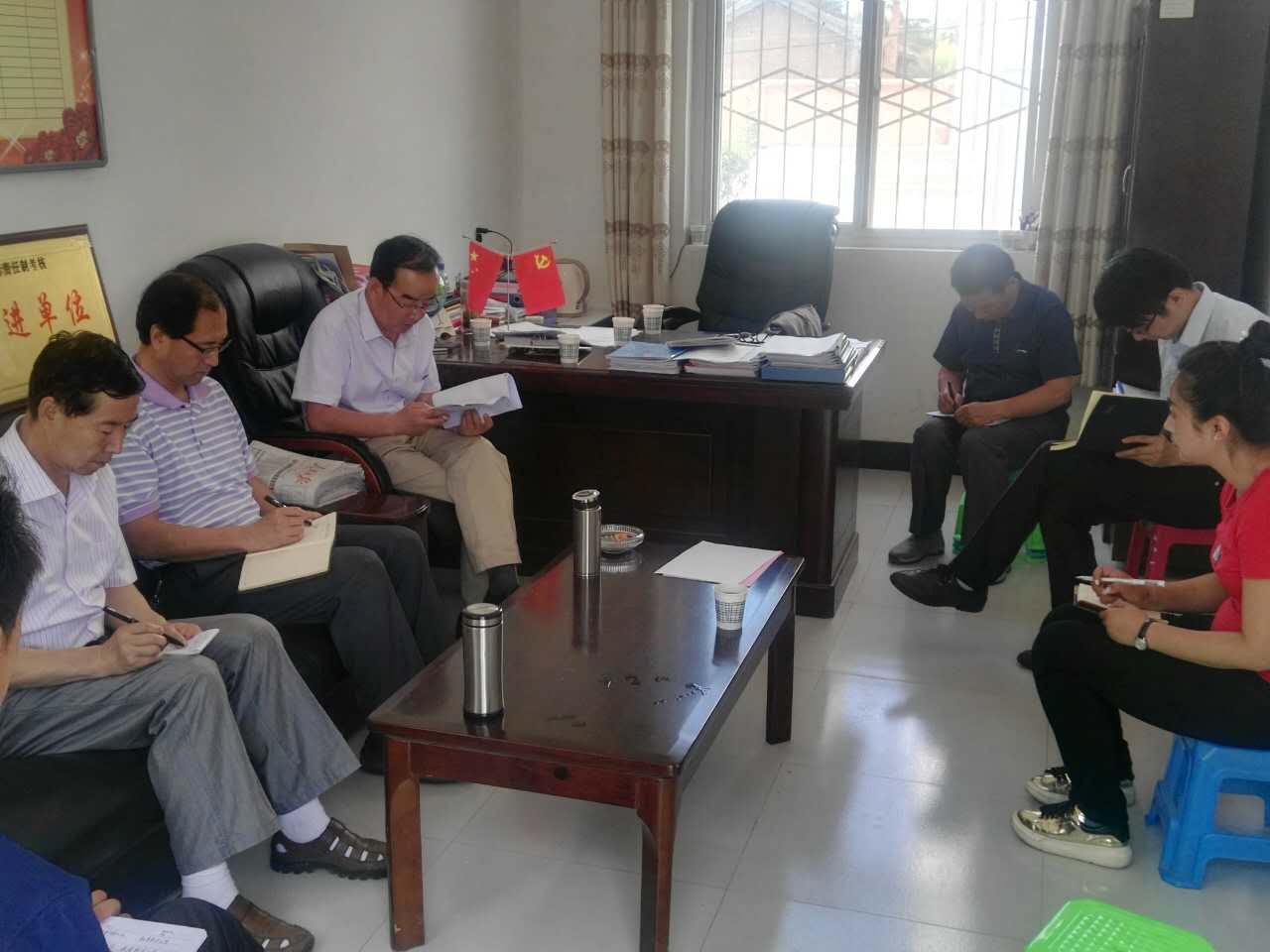 座谈在澄铭窑村进行,麟游县扶贫办李文博主任亲自陪同,村支部书记高会哲同志,对学院一年来的扶贫工作给予高度评价,感谢学院给村上贫困户进行了项目帮扶,及村委会办公设施捐赠。