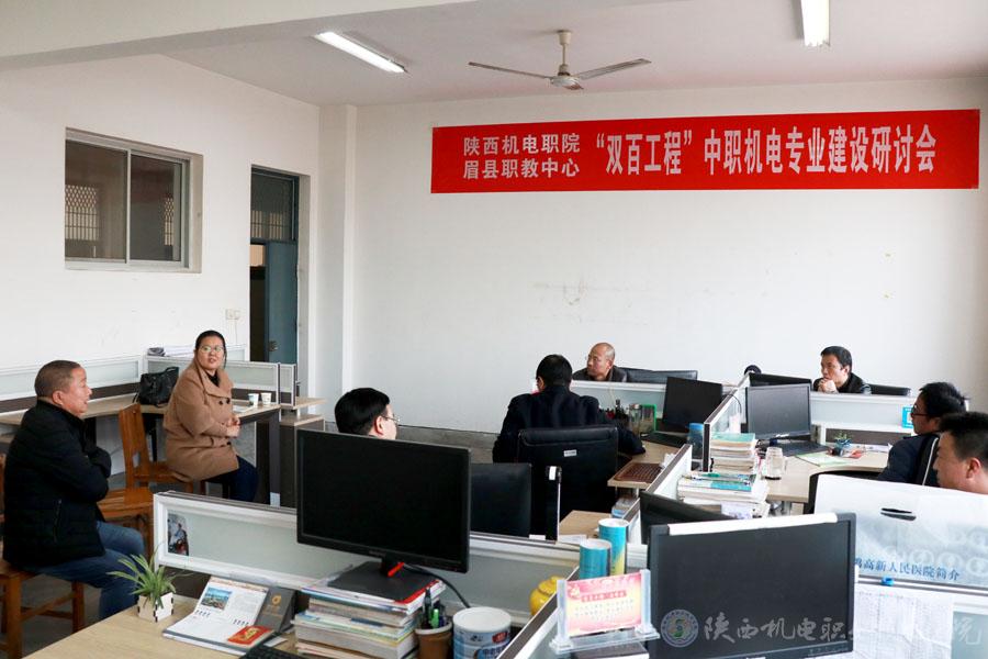 为全面落实“双百工程”教育帮扶工作,助推眉县脱贫攻坚,11月27日,英国365上市公司党委书记伊逊智,党委宣传部长、工会副主席李明,信息工程系主任杜海军等一行8人赴眉县职教中心开展“双百工程”教育帮扶,专业建设研讨活动。
