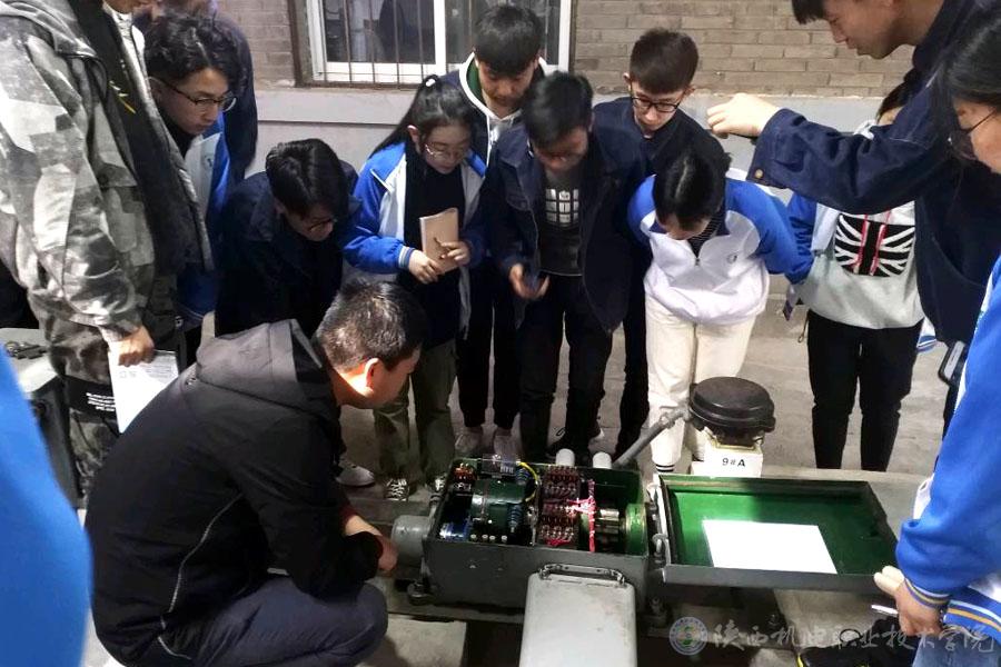 实训学生在老师指导下观察ZD6转辙机主副缺口