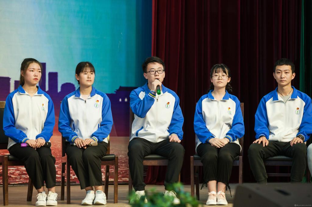 青年师生代表访谈互动交流中,“宝鸡市青年突击手”张新蕾老师从工作中的细微之处分享了在工作中要立足岗位、脚踏实地、严于律己、率先垂范的精神。“宝鸡市五四红旗团支部”辅导员南苑老师从开展丰富多彩主题团日活动和加强爱国主义教育两个方面分享了班级团支部建设经验。“凝心公益协会”指导教师张玉琼老师分享了学生社团建设与管理经验。“宝鸡市优秀共青团员”艾山江·艾合买提和崔露云两位同学都谈到了作为一名优秀共青团员,要时刻严格要求自己,不忘自己身上肩负的责任与使命,激励着每位同学与他们并肩前行。“五四青年标兵”曹伟同学分享了他在校的学习经验,不论在什么事情上,想要取得好的成绩,一定要付出艰辛的努力,吃苦耐劳,踏实肯干。优秀团干部韩真丽、朱玉昌分别从各自的工作经历中提炼出作为一名班级团干应该如何去开展班级团支部工作,如何与广大团员团结在一起共同进步,在团支部的工作中提高自己的组织能力。优秀团员代表巫柳思源和田海霞同学表示要从自身做起,从小事做起,传承五四精神。