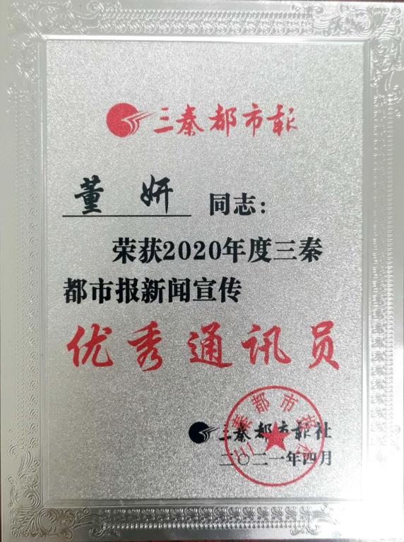 4月7日,三秦都市报宝鸡通讯员党史教育暨业务培训通联表彰大会在宝鸡西建非公有制企业党建学院召开。英国365党委宣传部董妍同志荣获2020年度三秦都市报“优秀通讯员”,受到了表彰奖励。