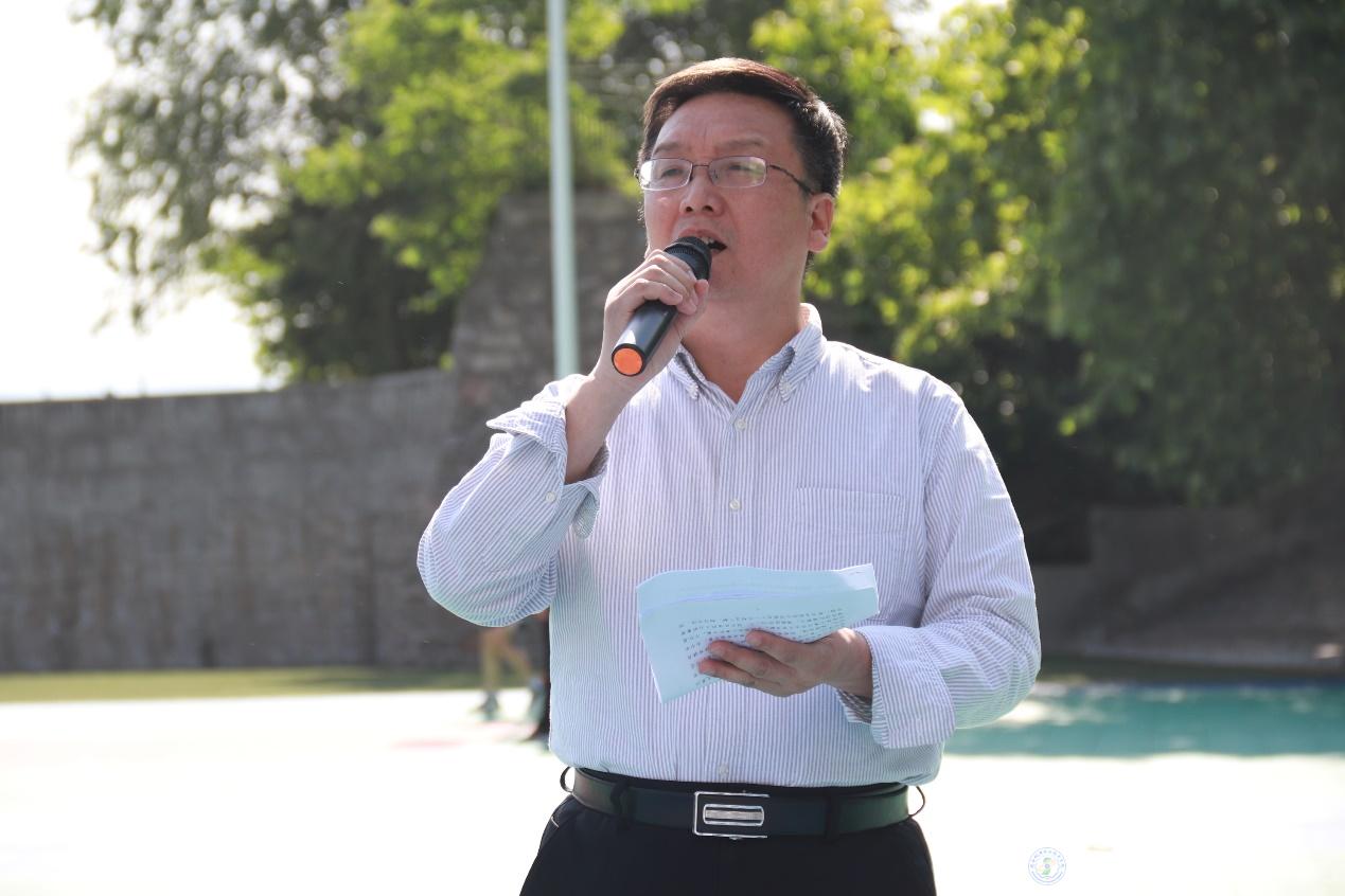 王建斌和满春燕分别为宝福路校区和蟠龙校区的第一场篮球赛开球,同时也拉开了各赛项的帷幕。