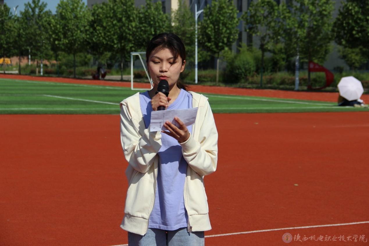 20汽检五年班李韫步、20信息安全班古丽给乃尔·海力力代表裁判员发言, 19网络技术班王童、20机电技术3班见凯代表运动员宣誓发言。
