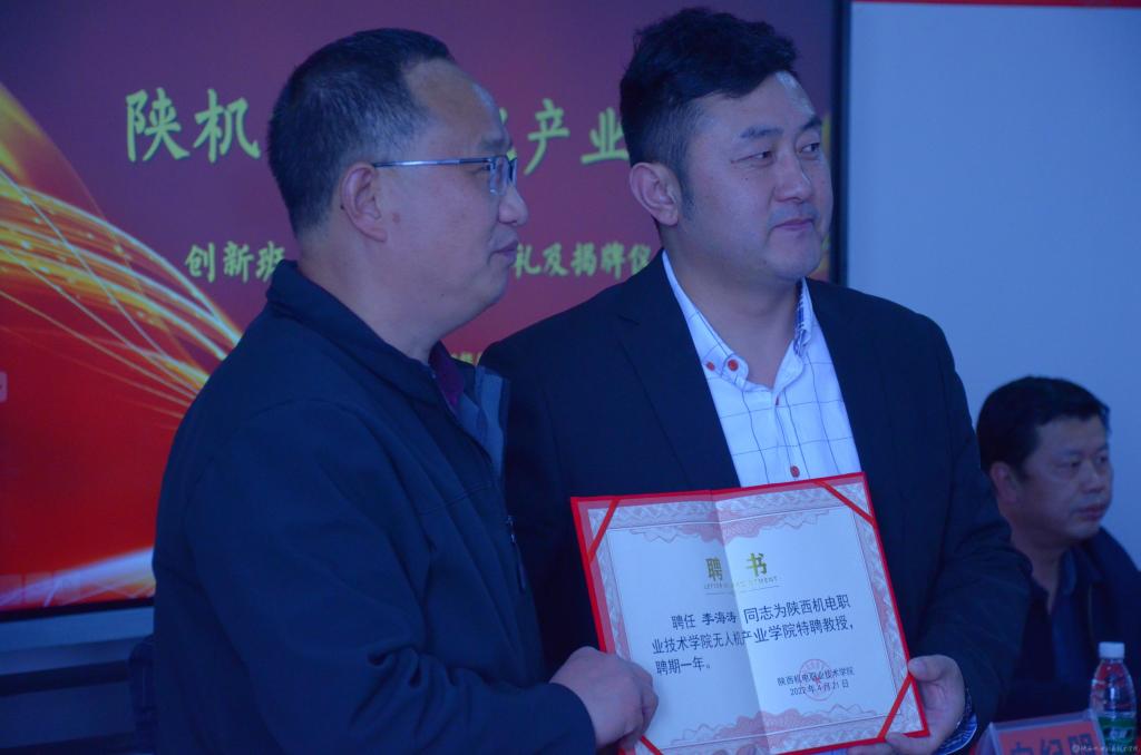 接着,李海涛宣布无人机产业学院“产业班”和“创新班”学员名单,并颁发聘书。