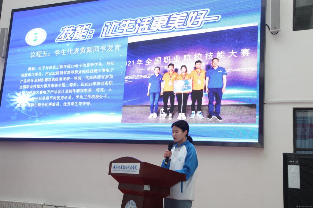 工匠大师代表田浩荣在发言中分享了个人的成长经历,鼓舞人心、催人奋进,激励全体同学把个人成长与祖国奋进契合起来,让朴素人生更加多姿绚丽,用实际行动迎接党的二十大胜利召开。