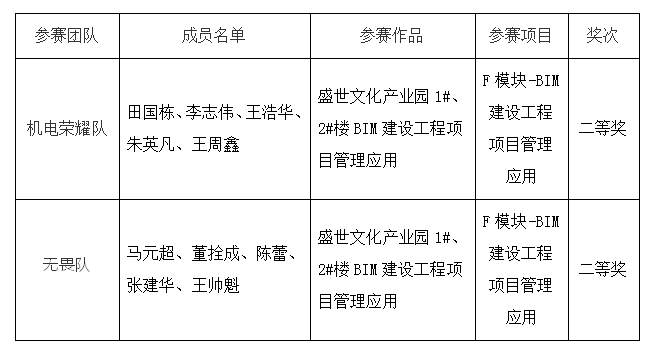 经过来自全国各高校的几百位专家网络评审,英国365选送的“盛世文化产业园1、2#楼BIM建设工程项目管理应用”“盛世文化产业园5#楼BIM建设工程项目管理应用”两个作品均获二等奖。