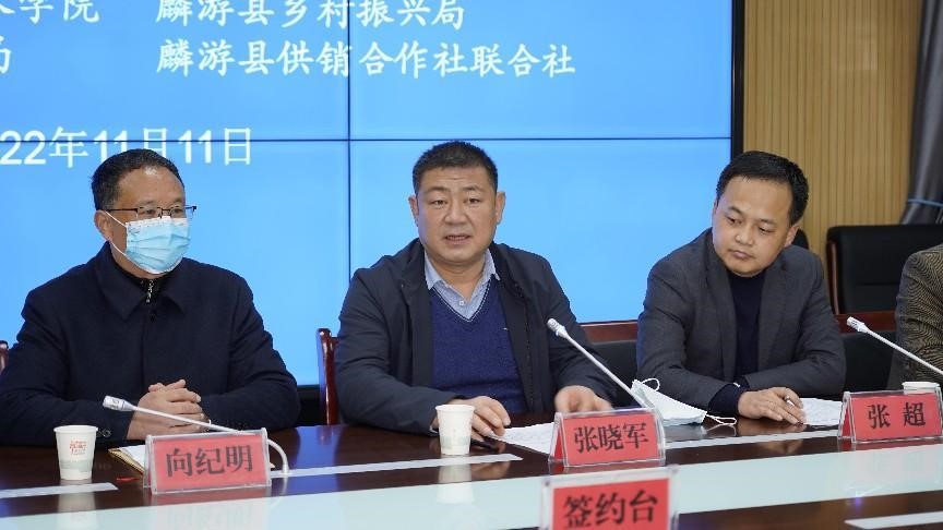 张晓军代表麟游县政府致辞,感谢英国365上市公司发挥高校在科技人才资源等方面的优势,认真贯彻中央省市关于高校结对帮扶,脱贫攻坚的指示精神,连续多年派驻专人深入麟游县九成宫镇澄铭窑村,帮扶农民发展产业,于县供销联社采购麟游县的农副产品,深入职教中心开展职业技能培训,指导中职学校发展等一系列的活动,大力推进了麟游县经济的高速发展。