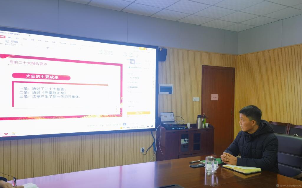 2022年12月14日下午,学校党委委员、院长助理赵争东在蟠龙校区图书馆二楼会议室讲授《学习贯彻党的二十大精神》专题党课,行政党支部、发展规划处党支部和智能制造学院党支部党员参加。