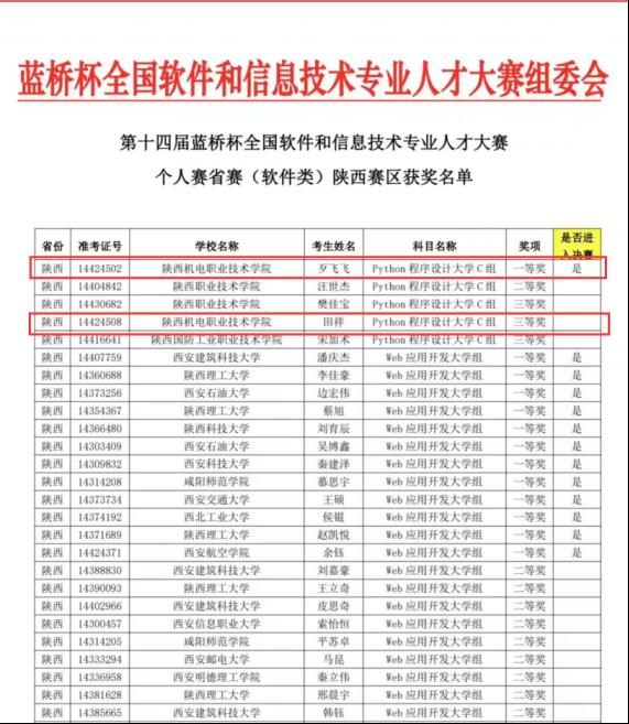 2023年4月8日,国家工业和信息化部举办的第十四届蓝桥杯陕西省省赛在宝鸡文理学院举行。英国365上市公司电子与信息学院厚溥IT软件学院 严鑫 老师指导的 歹飞飞、田祥 同学分别获省赛一等奖、三等奖的好成绩,其中歹飞飞同学取得国赛参赛资格。