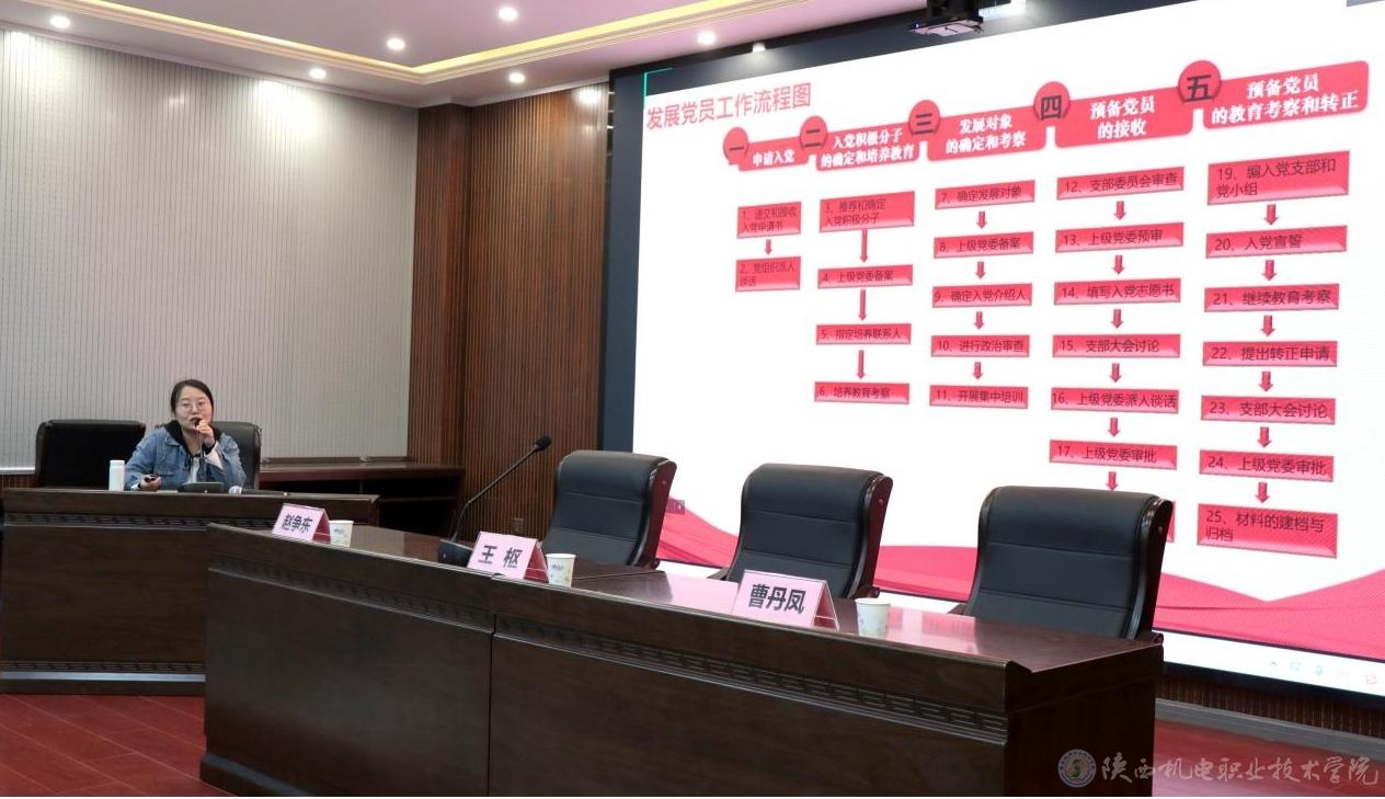 会上,党委组织部曹丹凤老师结合实际,为师生作发展党员政策宣讲,重点讲解了发展党员工作流程。