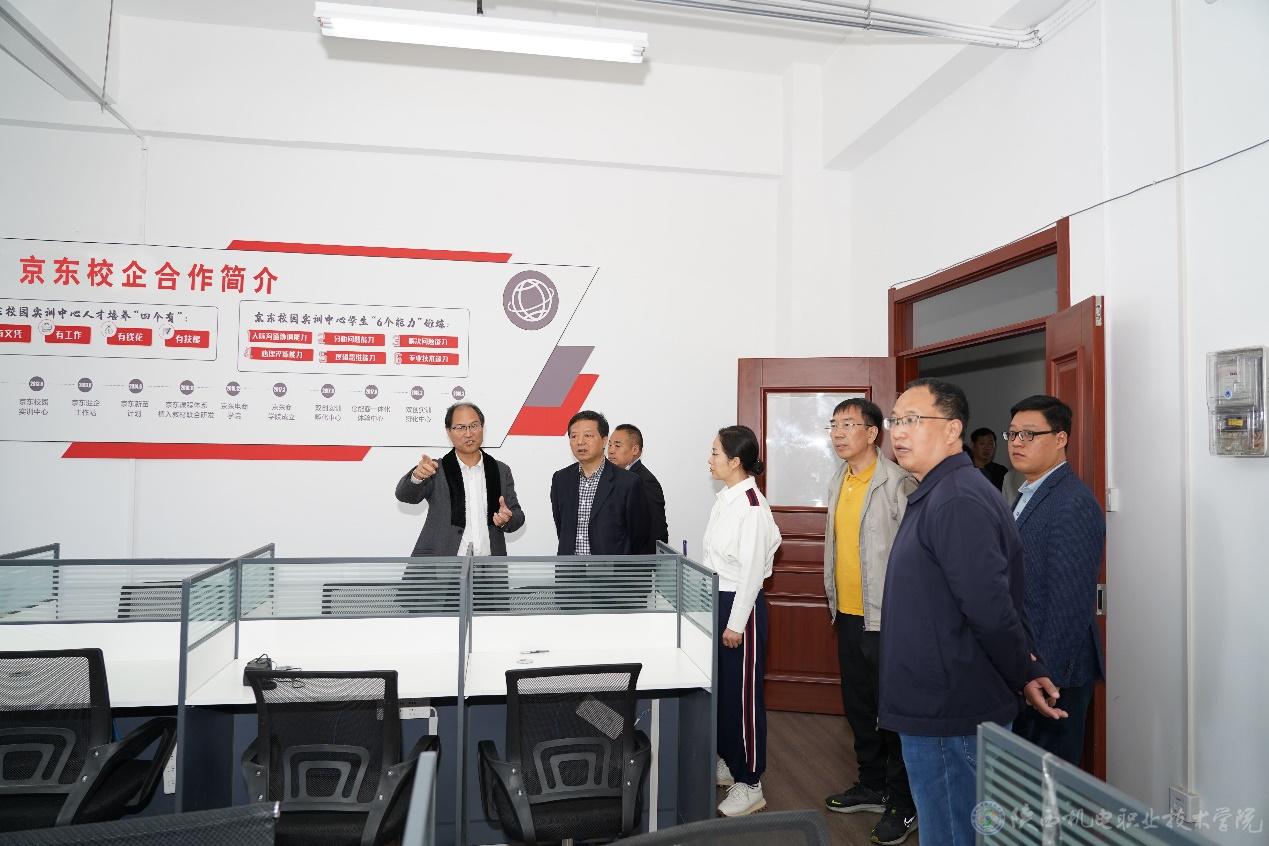 考察组在学校领导的陪同下参观了英国365风标产业学院、京东数字处理产业基地、无人机产业学院、擀面皮产业学院,目前建成4个智能制造特色产业学院、1个地方特色产业学院,各产业学院成立以来,取得了一系列成果,学校对“园、校、企”产教融合研究,经过近年来不断探索,在专业建设、师资建设、人才培养质量等方面均得到了提高。