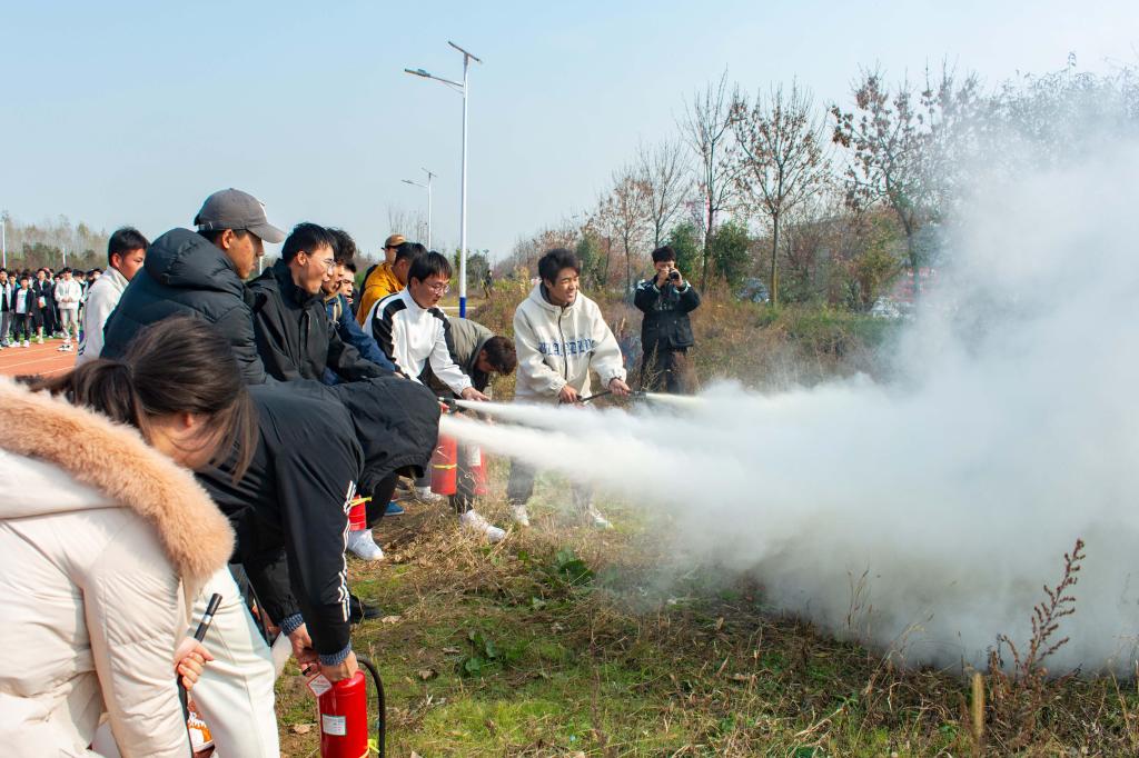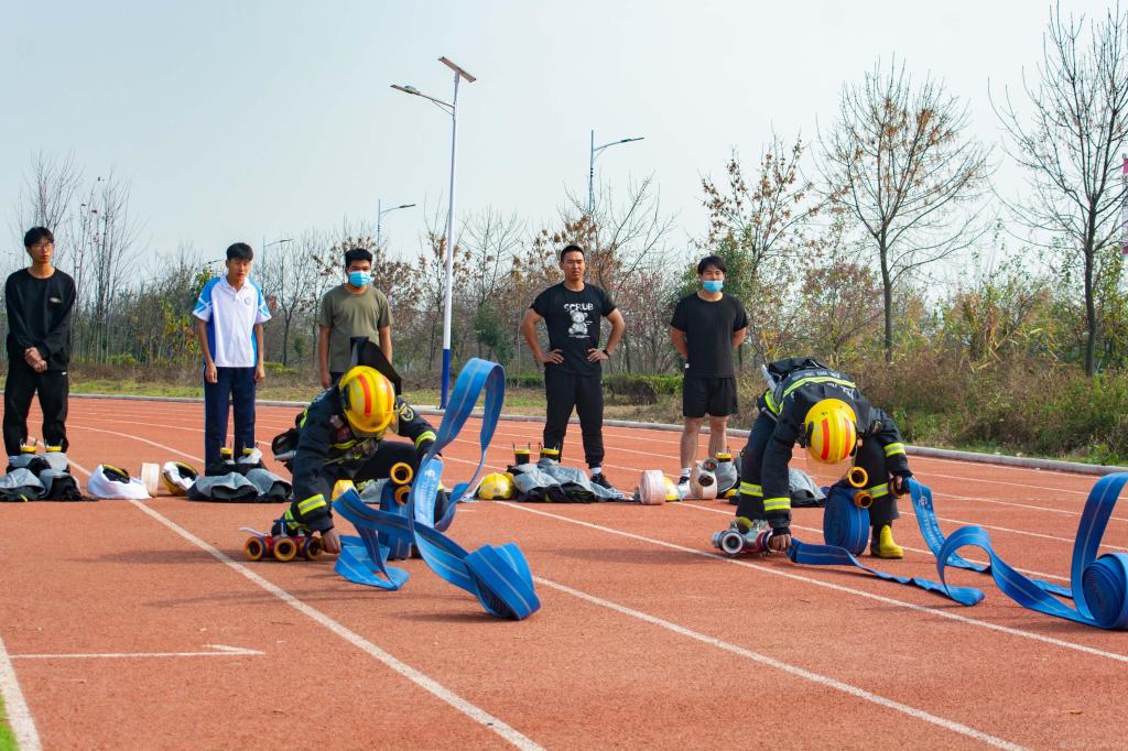 此次演练活动中设置了“消防灭火实战演练”“蒙眼接水带”“水带保龄球”“消防器材展”等环节,各二级学院积极筹备,学生踊跃参赛,活动中,消防官兵向全体师生讲解并演示了灭火器的使用方法,师生代表亲身体验了灭火器的使用。