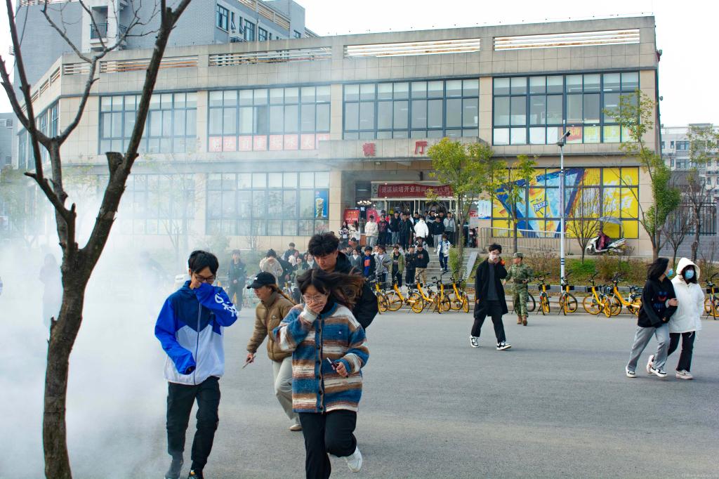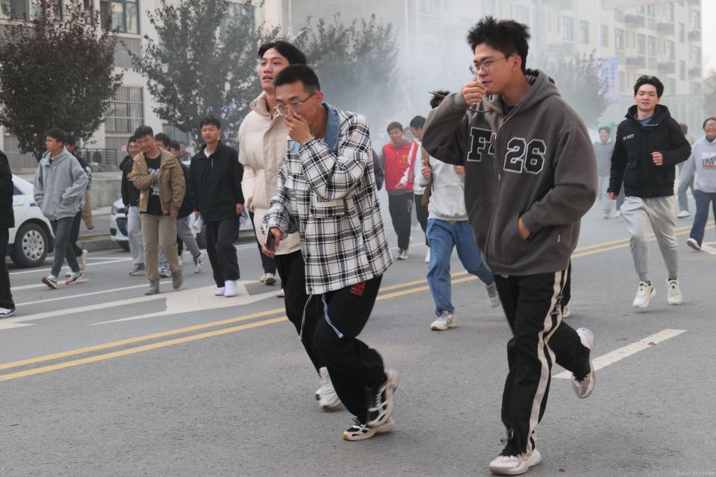 为确保演练安全有序进行并取得实效,学校党委高度重视,保卫处从演练方案、逃生疏散路线、师生动员、物资保障、安全措施等多方面着手,精心策划,周密部署,下午1点,随着警报的响起,广播中下达“宿舍楼发生火灾,请同学们立即撤离”的指令,全体师生沿着预定的疏散路线快速撤离到指定区域集合。随后各级学院负责人清点人数,并向张新堂汇报,蟠龙校区共计4000余名师生用时7分钟全部安全疏散完毕。