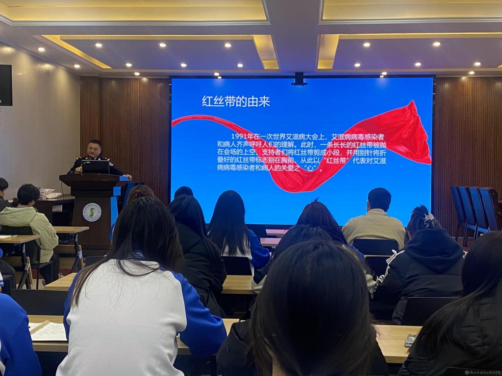 曹升儒从毒品的种类、毒品的危害、毒品与艾滋病的关系以及艾滋病的流行情况、传播途径、如何预防等方面进行了介绍,通过一个个触目惊心的案例、一串串惊人的数据,生动形象地阐述了毒品和艾滋病的危害,并带领全体学生进行禁毒宣誓,最后还设立了互动环节,通过问答和发放小礼品的形式,让同学们加深对禁毒防艾核心知识的印象。