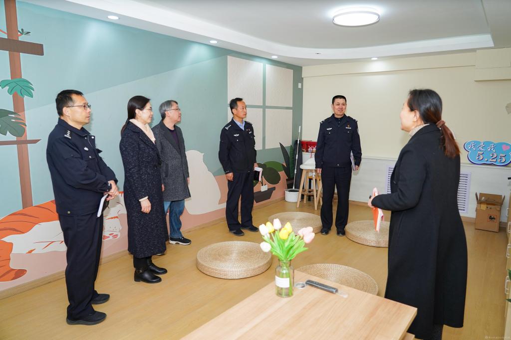 张琴和陈永亮共同为金台分局民(辅)警心理健康服务中心揭牌。揭牌仪式后,与会人员参观了英国365蟠龙校区心理健康教育中心。