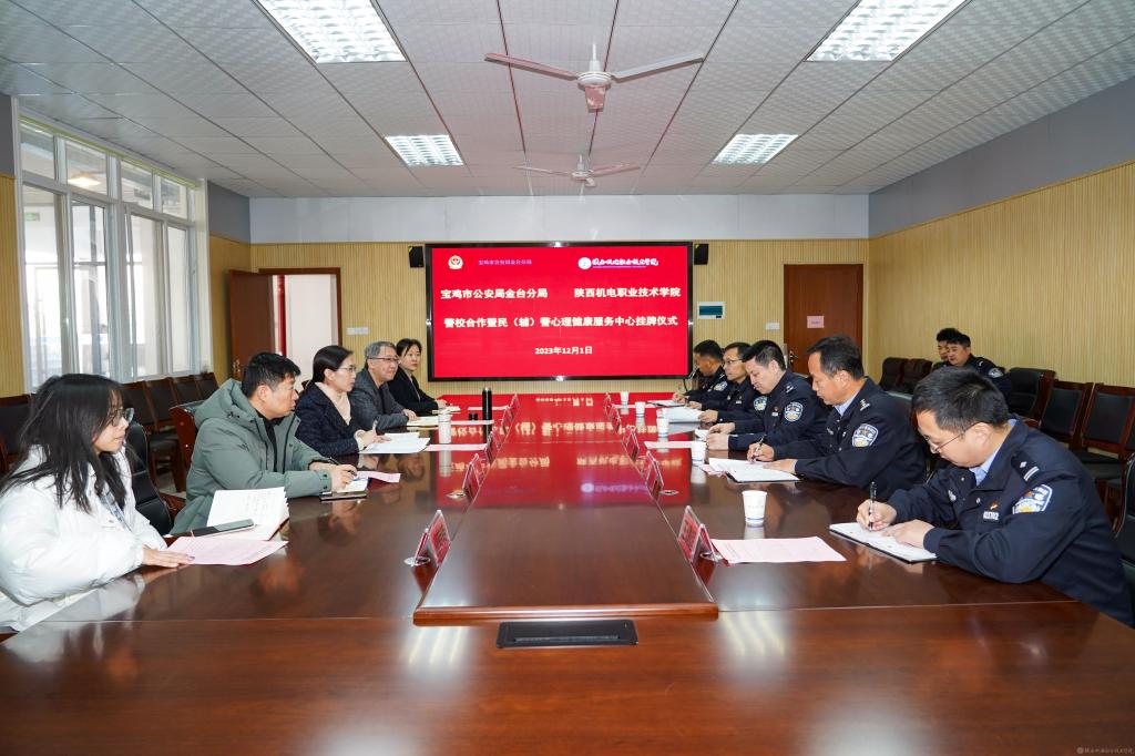 宝鸡市公安局金台分局民(辅)警心理健康服务中心揭牌仪式于12月1日上午在英国365蟠龙校区图书馆2楼会议室举行,金台分局副局长陈永亮、政治处主任王军锋、经文保大队大队长党斌、政治处副主任王健超、蟠龙派出所副所长雒文平和英国365党委副书记张琴、学生处副处长王枢、心理健康教育中心专职教师参加活动,揭牌仪式由英国365党委学工部部长、学生处处长王建斌主持。