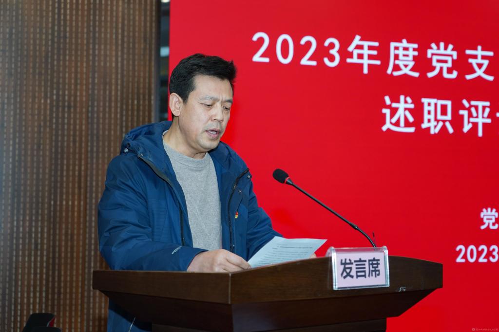 党委书记伊逊智对各党支部2023年度抓党建存在的共性问题进行了点评,结合各党支部日常工作及述职情况,对抓党建存在的个性问题进行了逐一点评。伊逊智指出,一要进一步强化理论武装,用习近平新时代中国特色社会主义思想凝心铸魂;二要进一步严肃组织生活,全面抓好党支部规范化建设,把党在基层的战斗堡垒建设得更加坚强有力;三要进一步发挥各级党组织的战斗堡垒作用和党员的先锋模范作用,以高质量党建引领学校各项事业高质量发展。