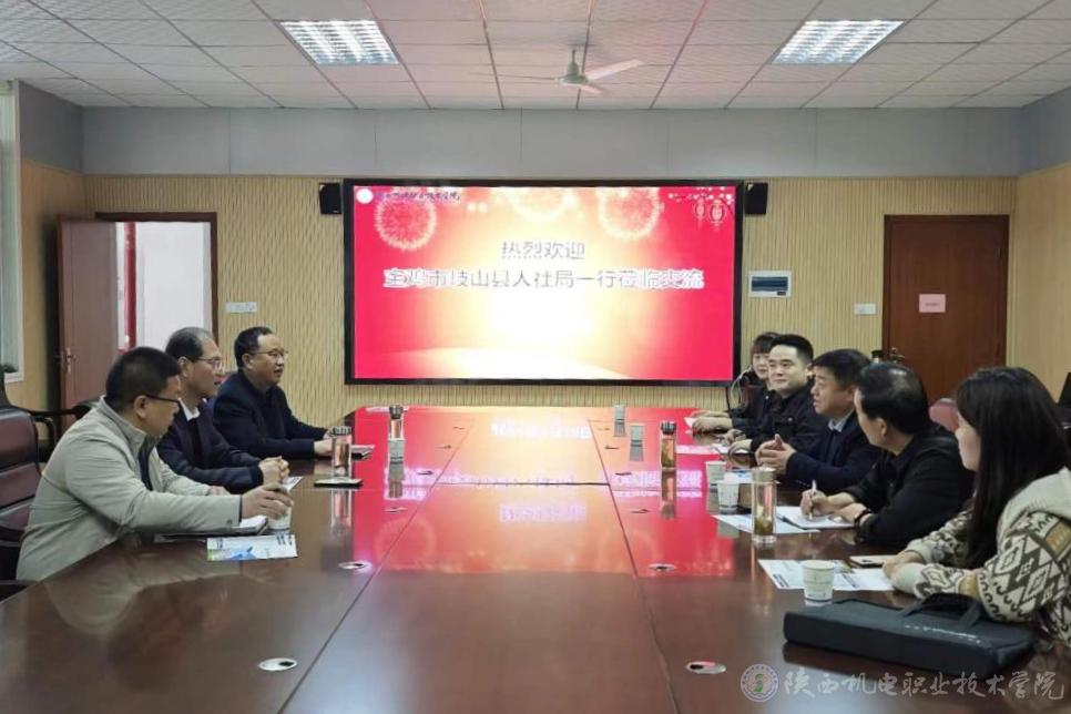 3月28日,宝鸡市岐山县人社局副局长冯毅、人才交流服务中心主任范文斌一行5人莅临英国365洽谈校企合作。学校党委书记伊逊智、院长向纪明、招生就业处副处长田正本接待了冯毅一行,并举行座谈会。