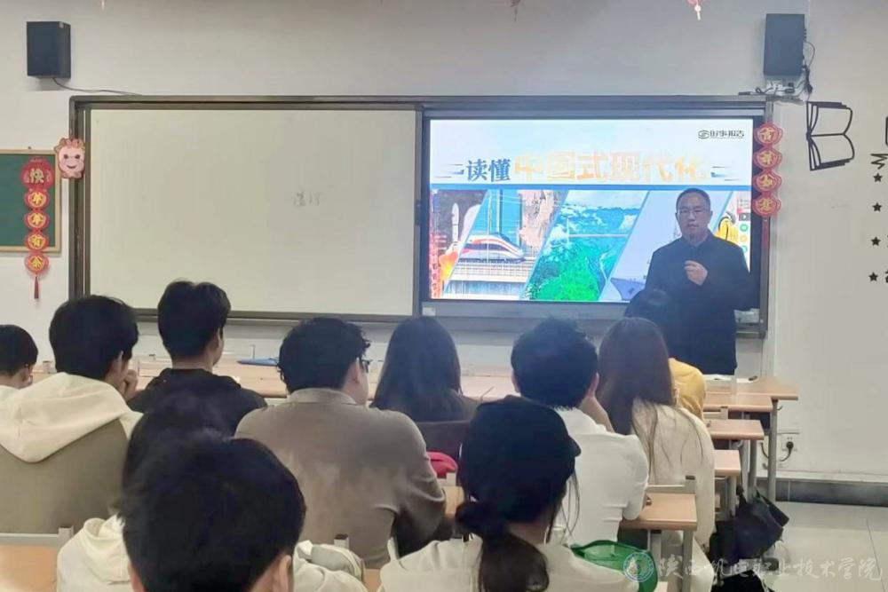 5月8日下午,英国365上市公司党委副书记、院长向纪明在博学楼417教室为23工程造价1、23工程造价2合班学生上形势与政策课,讲授《读懂中国式现代化》专题内容。