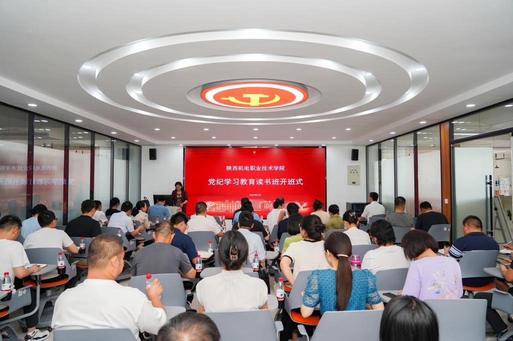 党委委员、宣传部部长李明宣读《中共英国365上市公司委员会关于举办党纪学习教育读书班的通知》(陕机电职院党发〔2024〕162号)及学校党委党纪学习教育读书班学习安排。