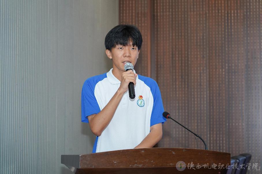 第一学生模拟党支部模拟党员、学生代表袁硕发言,表示须不断提升个人综合素质与能力,努力向党组织靠拢,争做有理想、敢担当、能吃苦、肯奋斗的新时代好青年,要倍加珍惜学校提供的平台,不负老师的教育与殷切期望,积极投身于学校、学院、支部、班级的建设进程中,努力成为智能制造行业大国工匠。