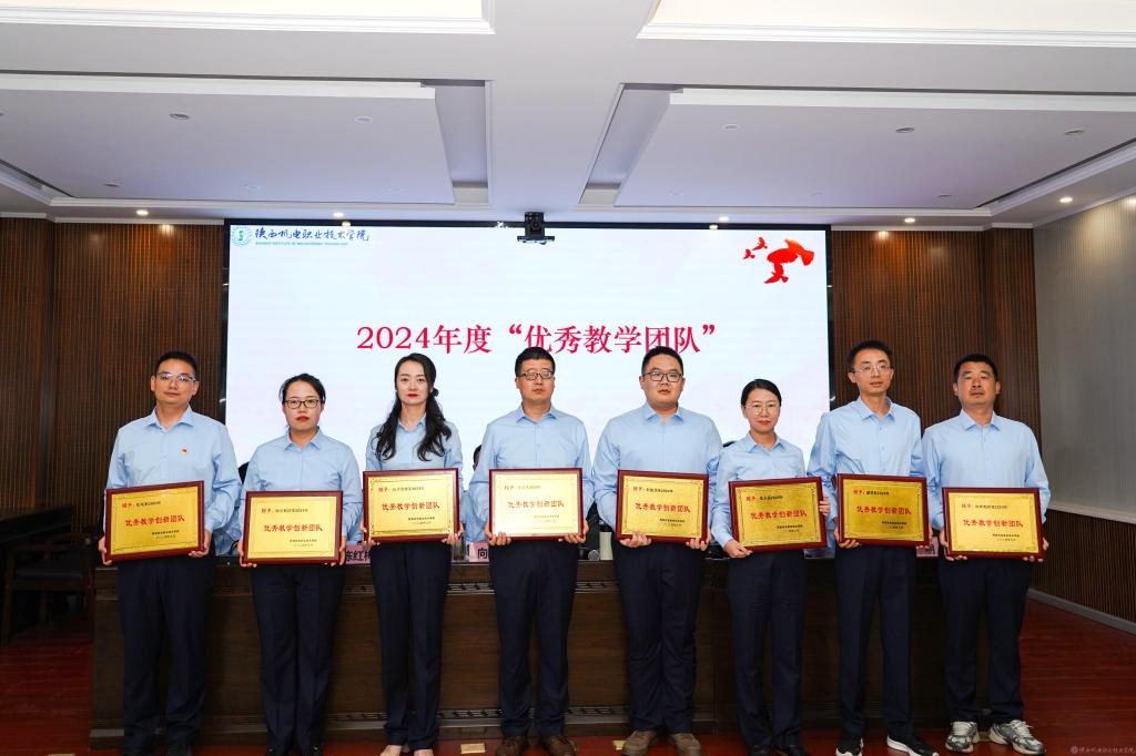 赵争东同志宣读《关于评聘2024年“专业(学科)带头人”“骨干教师”“优秀聘任教师”及评选2023年“优秀青年教师”结果的通知》并颁奖;宣读第七届全国高校大学生讲思政课公开课展示活动一等奖获奖名单、2024年中国国际大学生创新大赛金奖、银奖获奖名单并颁奖。