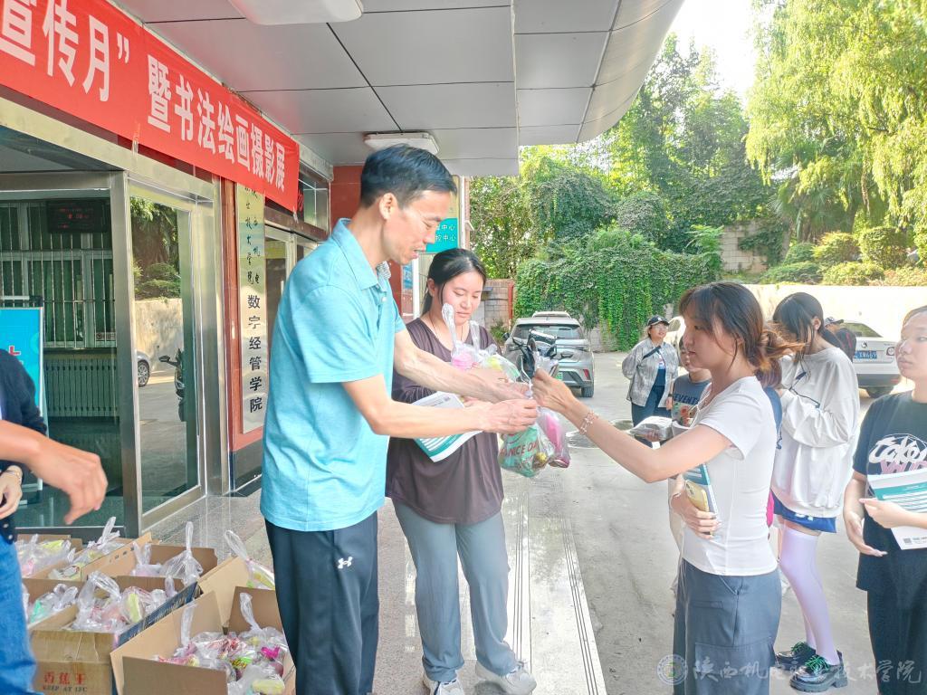 在蟠龙校区,张琴与各部门党政负责同志、辅导员、班主任们先后来到电子信息学院、智能制造学院、铁道工程学院,将一盒盒精心挑选、满载心意的月饼亲手送到同学们手中。月饼虽小,却承载着满满的祝福与关怀。每一块月饼,都蕴含着学校对同学们的深情厚谊与美好祝愿;每一次握手,都传递着师生间真挚的情感与温暖的关怀。