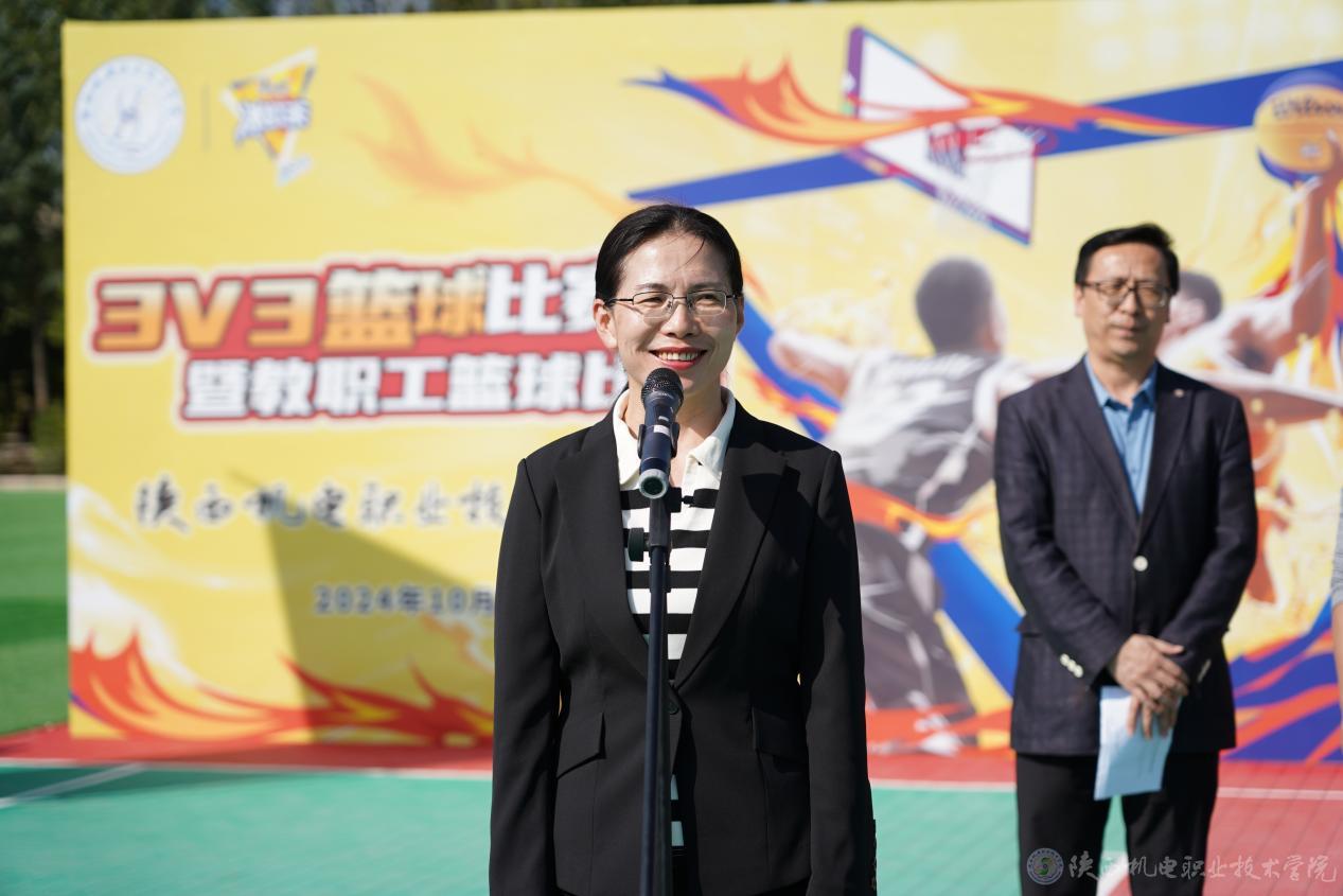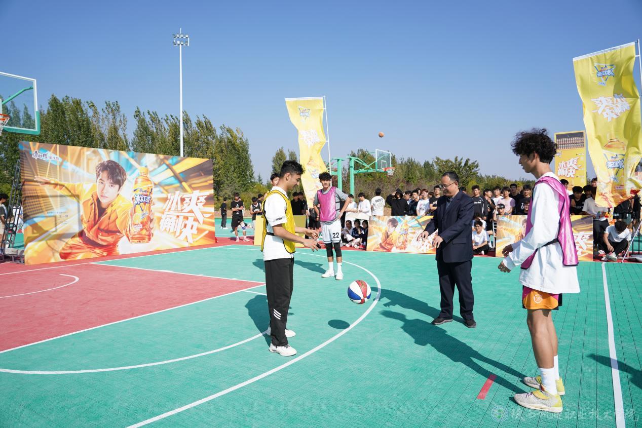 张琴正式宣布比赛开幕。向纪明为比赛开球。3v3篮球赛正式启动。