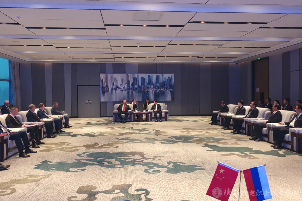 签约仪式后,伊逊智同古利亚科夫进行友好交流,并合影留念。