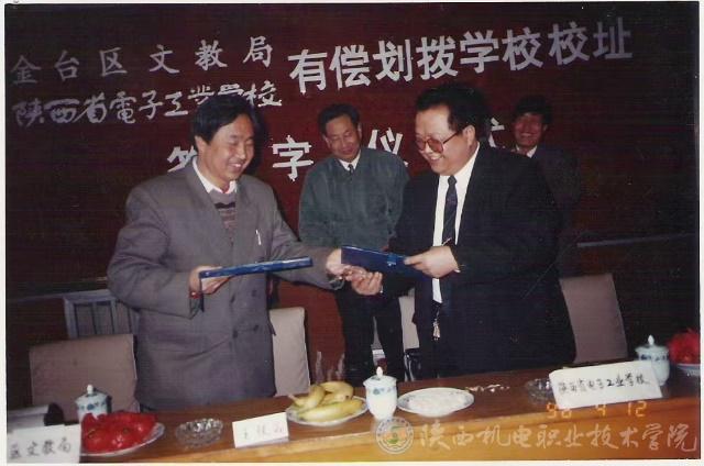 1994年,原电子部副部长欧阳文视察长寿中学校址,听取了校址转让汇报,1995年,召开校址转让论证会,同年租借长寿中学校址,开始恢复招生。1996年,金台区文教局与陕西省电子工业学校举行划拨校址签字仪式,有偿接收占地19亩的“宝鸡长寿中学”校址,自此,陕西省电子工业学校真正有了自己的校址,办学走向正轨。