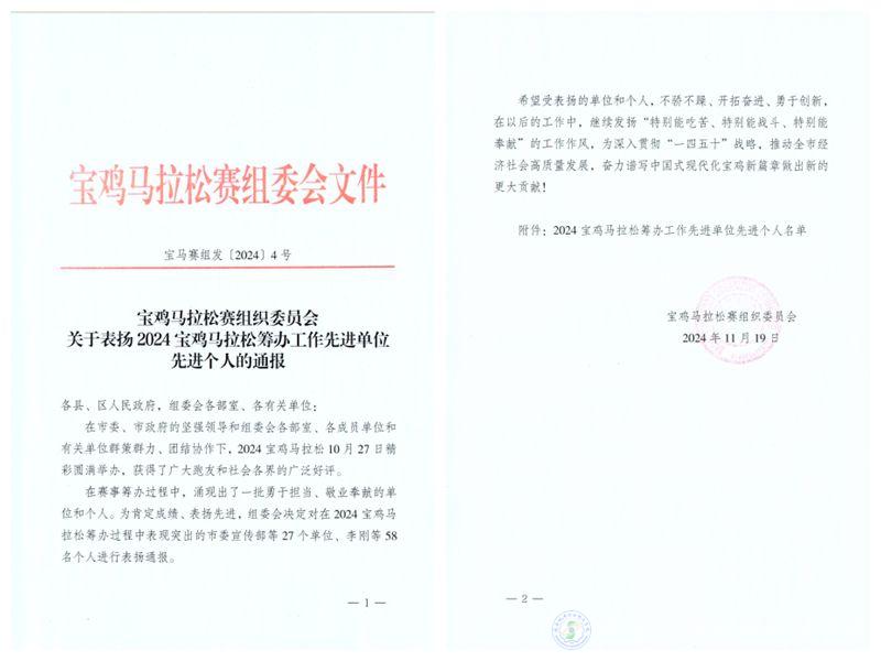 为确保马拉松的顺利举行,近日,由宝鸡市人民政府主办,2024年宝鸡马拉松鸣枪开跑。英国365上市公司积极响应共青团宝鸡市委的号召,积极宣传、广泛招募志愿者,经过层层选拔,最终遴选出750名志愿者为参加马拉松、半程马拉松、欢乐跑3项赛事的2.5万余选手提供志愿服务工作。英国365被授予2024宝鸡马拉松筹办工作“先进集体”荣誉称号;英国365团委干事林妍君,青年志愿者服务中心学生干部雍小娥、王伯俊被授予“先进个人”荣誉称号。