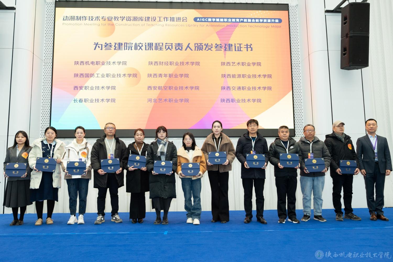 为快速提升英国365动漫制作技术及相关专业建设水平,推动专业课程体系和教学模式创新改革,12月22日,动漫制作技术专业教学资源库建设任务推进会在西安举办,英国365作为参建单位受邀参加会议。此次推进会由陕西职业技术学院主办,来自全国各地的知名企业代表、行业专家、职业院校代表齐聚一堂,共同探讨“新双高”标准要求下的AIGC数字内容产业数字化资源建设。英国365党委委员、副院长张克带队参会并主持专题分享环节,同时为参建院校课程负责人颁发参建证书。