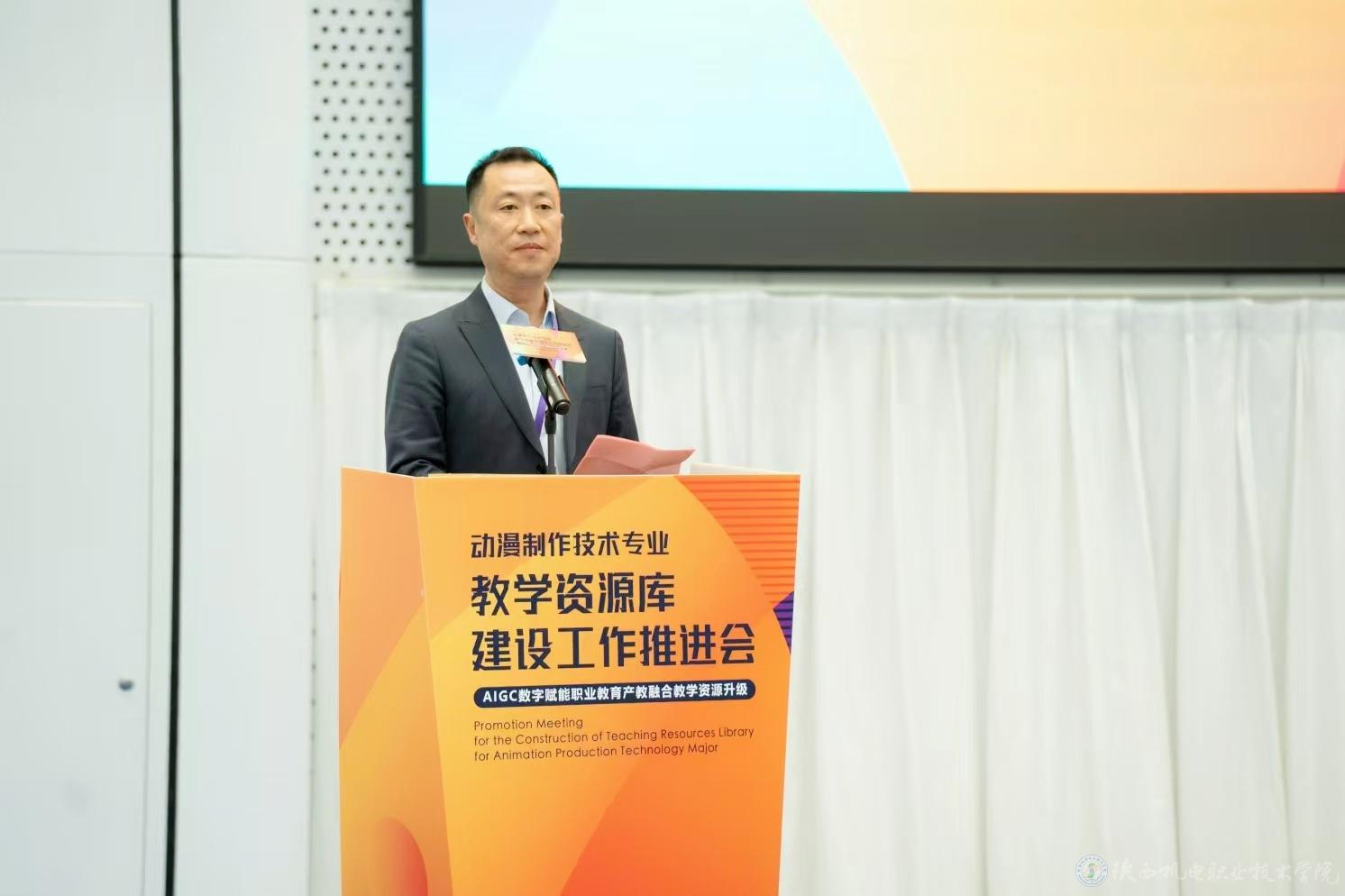 陕西职业技术学院党委副书记、院长张弘致开幕辞。上半场,深圳职业技术大学、重庆电子科技职业大学等重点职业院校负责人对数字化时代教学资源升级转型案例进行了分享,并对新质生产力引领数字内容产业人才培养进行了讨论,从多方向为后续参建课程的开发建设、推广验收和持续更新作出了明确规范。