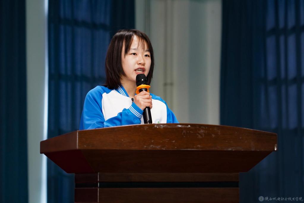 数字经管学院22数字媒体班范晶晶同学代表获奖学生发言,她表示受到学校的表彰既是对自己以往努力付出的肯定,更多的是对自身提出了更高要求。她用“坚守自信自立之精神、秉持坚韧勤奋之品质、怀揣乐观进取之心态”与大家共勉。