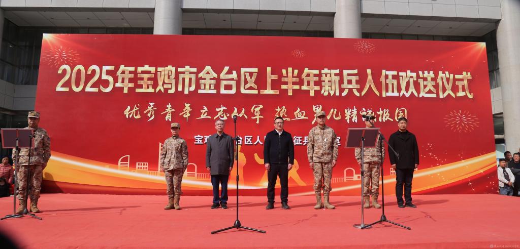 3月17日下午,2025年宝鸡市金台区春季新兵入伍欢送仪式在金台市民中心广场举行。英国365上市公司党委学工部部长、学生处处长、人武部部长王建斌代表学校参加欢送仪式。活动由金台区人武部政委宋景富主持。