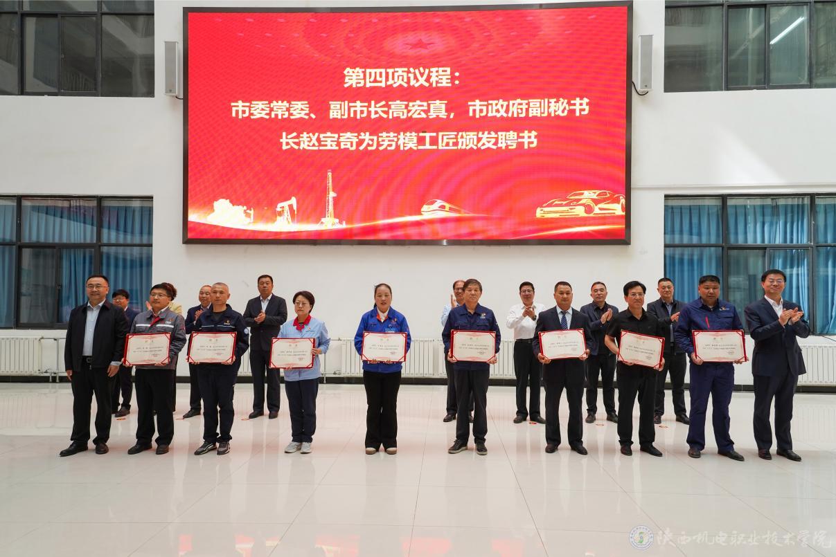活动中,市总工会副主席杜萍宣读了宝鸡市劳模工匠助力产教融合“百千万”活动实施方案,市教育局局长惠强宣读了关于推荐刘湘宾等100名劳模工匠兼任职业院校实训教师的意见,市教育局、市人社局相关负责人和劳模工匠代表蔡嵘进行了交流发言。
