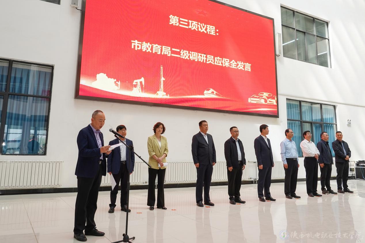 伊逊智作了表态发言。他表示,宝鸡市劳模工匠助力产教融合“百千万”活动既是弘扬劳动光荣、技能宝贵、创造伟大的生动实践,更是为职业院校搭建深化产教融合、校企合作培育时代新人的重要平台。他强调,学校将通过“深化认识,提高站位,强化使命担当”“传承精神,厚植文化,筑牢成长根基”“协同创新,产教融合,培育实用人才”“深化合作,服务发展,助力地方经济”等举措,着力培养高素质技术技能人才,服务区域经济快速发展。