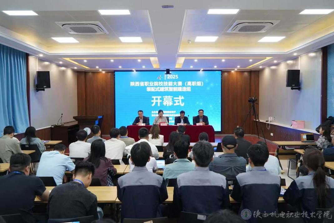 4月25日,2025年陕西省职业院校技能大赛(高职组)装配式建筑智能建造组开幕式在111会议室举行。卢彦峰主持开幕式,教务处副处长高白川致辞,并对本次大赛提出三点期望:一是以赛促学,锤炼精湛技艺,希望各参赛选手能够珍惜机会,以饱满的热情、昂扬的斗志投入到比赛中去;二是以赛促教,推动教学改革,希望各参赛院校能够以此次大赛为契机,进一步深化教学改革,提高人才培养质量;三是以赛促建,助力行业发展,各参赛院校和企业要加强合作,推动行业转型升级。