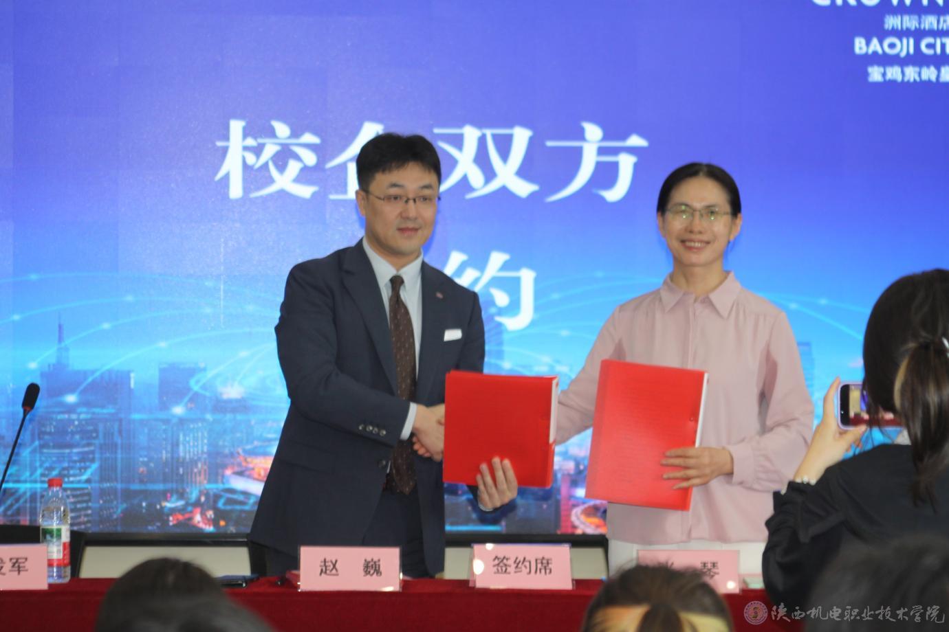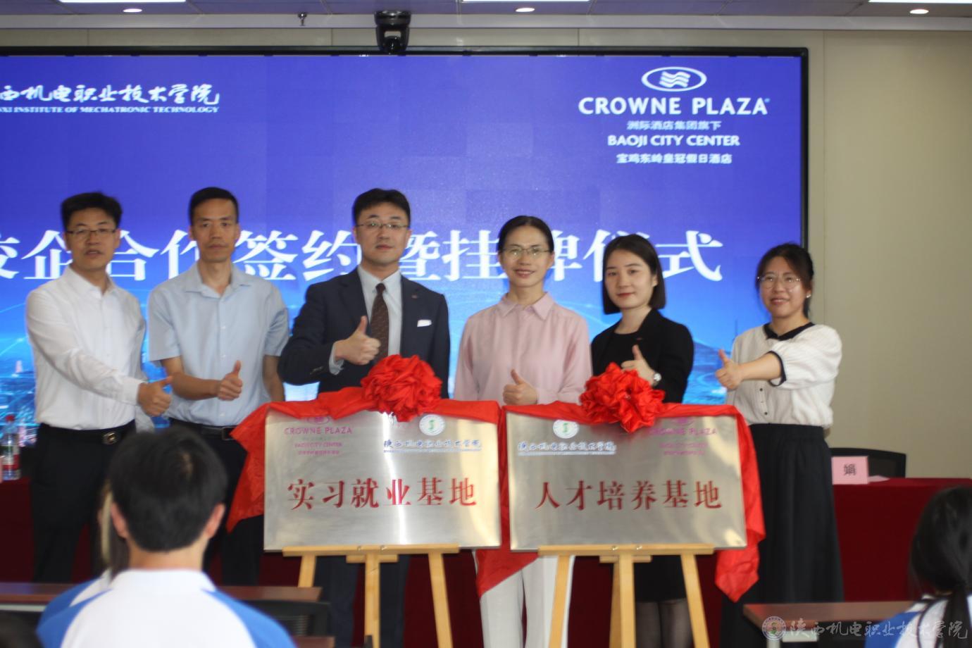 接着,张琴和赵巍为英国365上市公司在宝鸡东岭皇冠假日酒店的“就业实习基地”和宝鸡东岭皇冠假日酒店在英国365上市公司的“人才培养基地”揭牌,并进行校企合作签约仪式。
