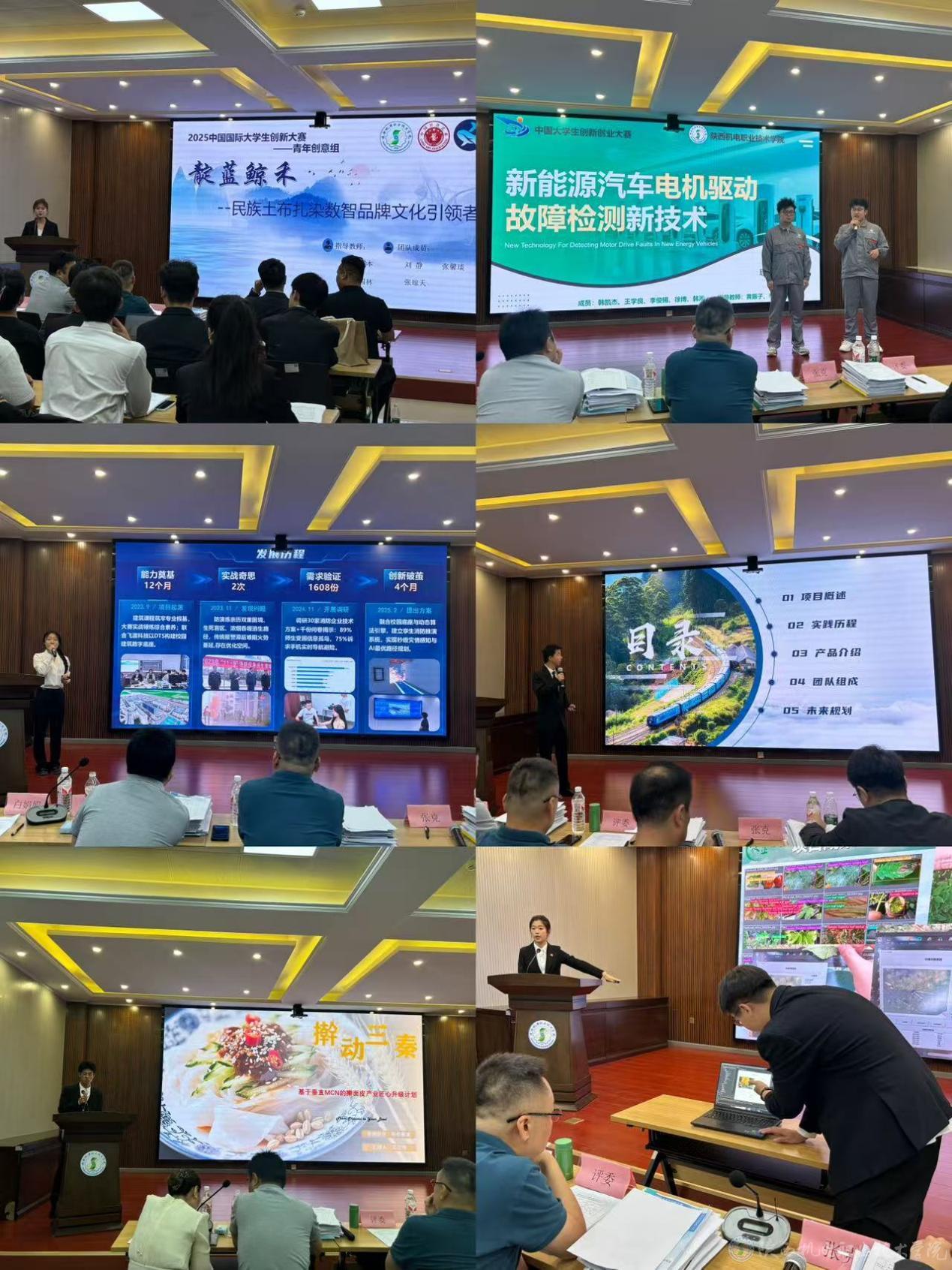 比赛路演环节采用“5分钟项目路演+4分钟项目答辩”赛制。各参赛团队通过PPT展示、实物演示、视频展示、情景模拟等多种形式,全方位呈现项目特色、亮点。从职教赛道的技术革新到“红旅”赛道的社会服务,从乡村振兴到智能制造,从教育创新到AI应用,参赛项目既立足专业特色,又紧扣时代脉搏,诠释了机电学子“敢闯会创”的青春风采、创新视野和社会担当。