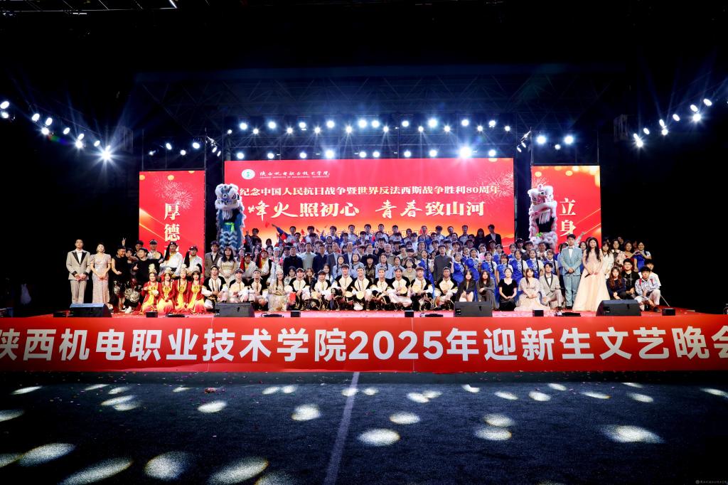晚会最后,2025级全体新生齐声合唱《强军战歌》,嘹亮而整齐的歌声在现场回荡,既彰显了新生们的蓬勃朝气和深厚爱国情怀,也为这场精彩纷呈的晚会增添了浓墨重彩的一笔,使青春的旋律、校歌的精神与家国的情怀在校园中久久萦绕。