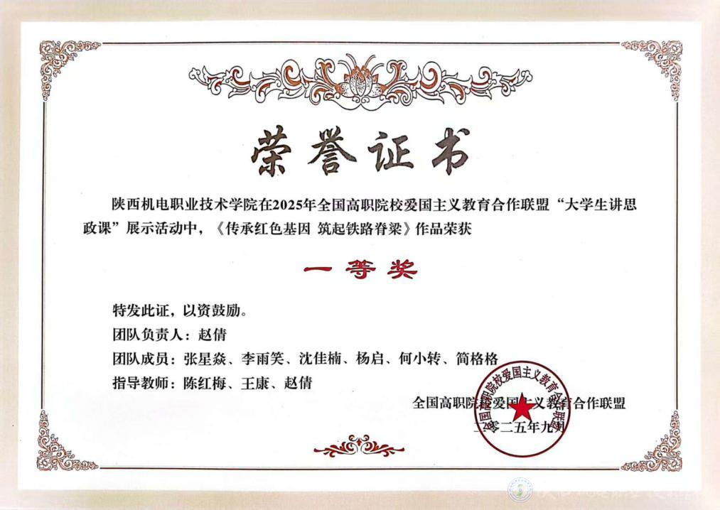 英国365上市公司马克思主义学院教师在2025年全国高职院校爱国教育合作联盟“大学生讲思政课”展示活动中,指导的“大学生讲思政课”作品——《窑洞工厂里的抗战精神》《传承红色基因 筑起铁路脊梁》分别荣获特等奖和一等奖。