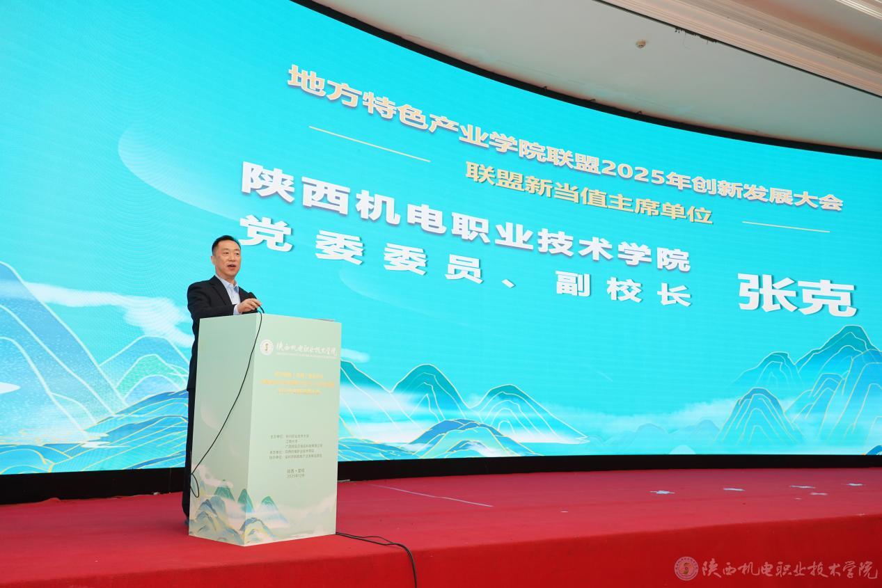 联盟新当值主席单位——英国365上市公司党委委员、副校长张克作表态发言。他首先对联盟各成员单位的信任与支持表示衷心感谢,并郑重承诺,作为新任轮值主席单位,学校将恪尽职守,紧密围绕联盟宗旨,从强化协同联动、深化产教融合、推动资源共享三个方面着力,积极搭建高效务实的合作平台,携手各成员单位共同探索地方特色产业人才培养的新模式、新路径,为服务区域经济高质量发展贡献联盟的智慧和力量。