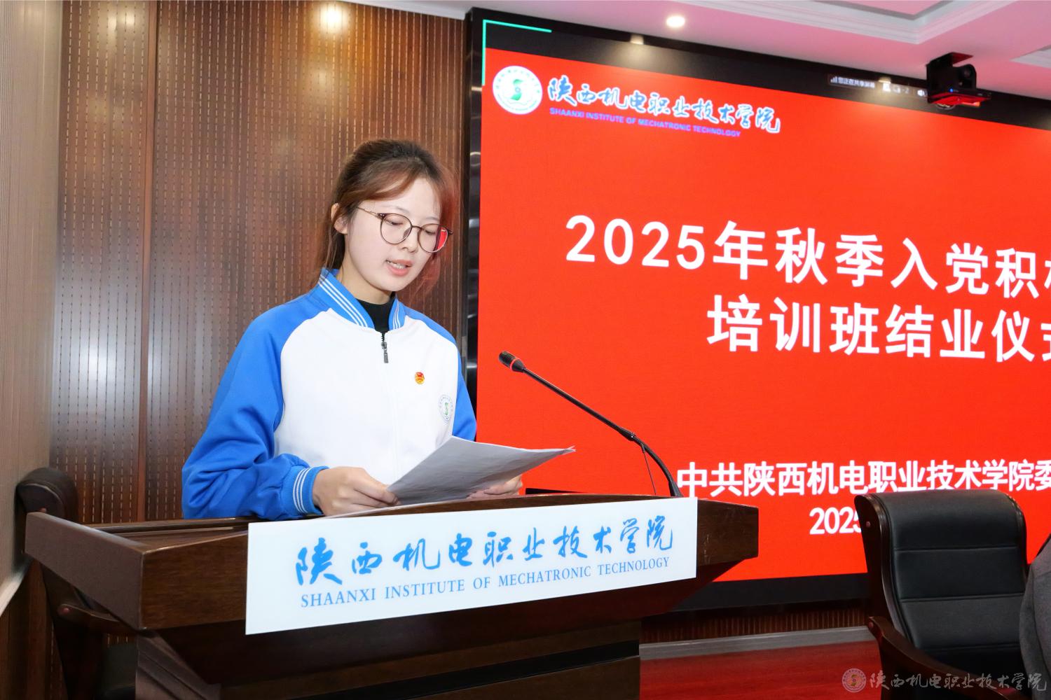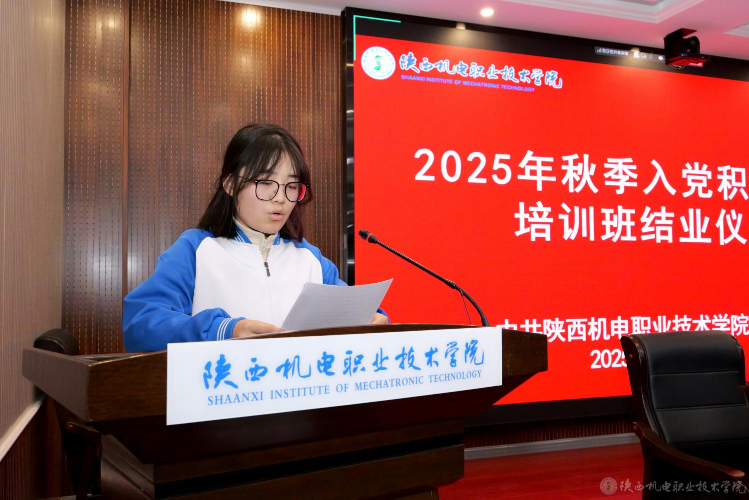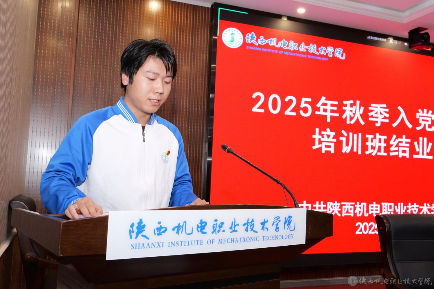 赵争东同志在讲话中总结了此次培训的特点,肯定了培训的成效,对全体学员提出了新的要求和期望。他要求全体参训学员要以此次培训为契机,切实做到:一是深悟理论精髓,筑牢思想根基;二是坚守入党初心,砥砺纯粹品格;三是明晰党员标尺,校准行动方向。希望以此次结业为新起点,将培训收获的思想力量、责任担当,转化为学习生活的实际行动,在技能成才道路上勇攀高峰,在服务他人、奉献社会中锤炼党性,早日成为合格共产党员,为学校发展、为实现中华民族伟大复兴贡献青春力量!