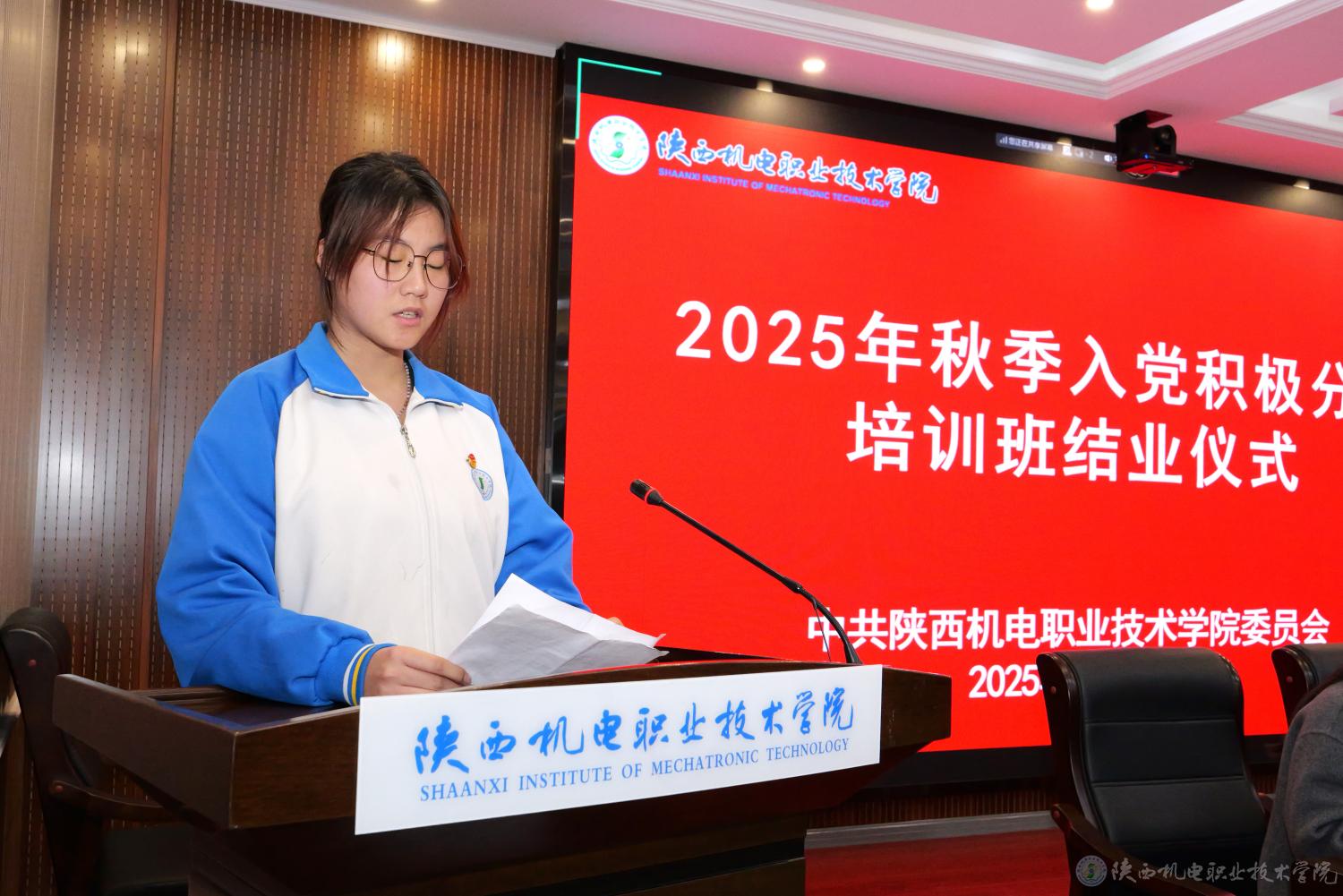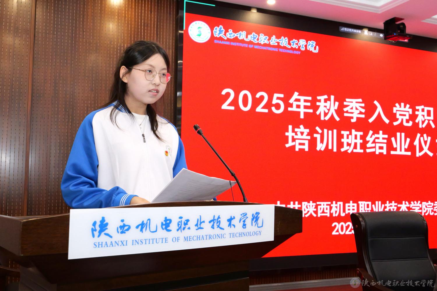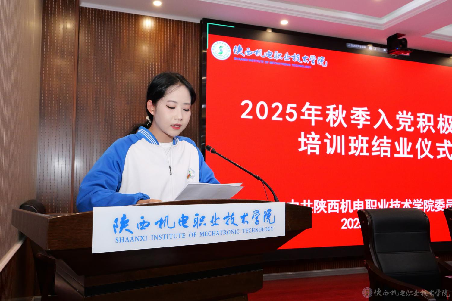 赵争东同志在讲话中总结了此次培训的特点,肯定了培训的成效,对全体学员提出了新的要求和期望。他要求全体参训学员要以此次培训为契机,切实做到:一是深悟理论精髓,筑牢思想根基;二是坚守入党初心,砥砺纯粹品格;三是明晰党员标尺,校准行动方向。希望以此次结业为新起点,将培训收获的思想力量、责任担当,转化为学习生活的实际行动,在技能成才道路上勇攀高峰,在服务他人、奉献社会中锤炼党性,早日成为合格共产党员,为学校发展、为实现中华民族伟大复兴贡献青春力量!