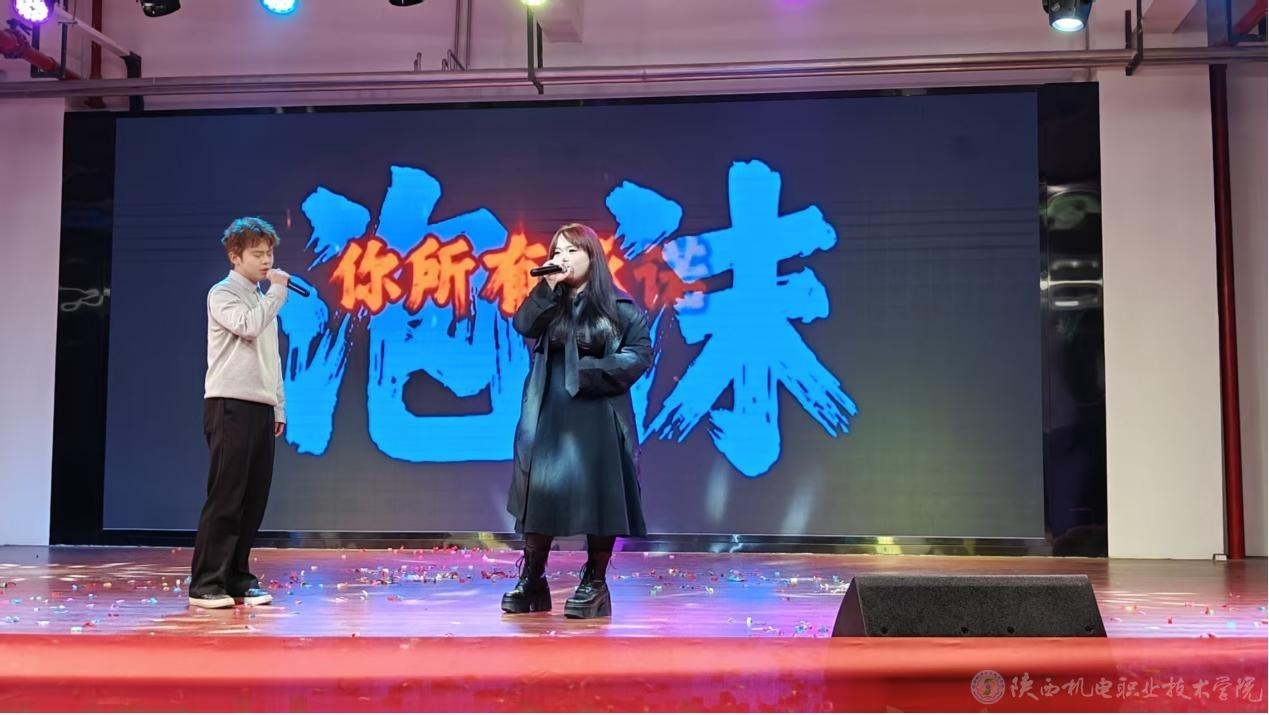 晚会现场还设置了互动抽奖环节,文创奖品精美,瞬间点燃了同学们的热情。大家欢聚一堂,情随律动,从热烈的舞蹈到动人的歌曲,从幽默的表演到激昂的诗朗诵,每个节目都展示着机电学子的才华和热情。