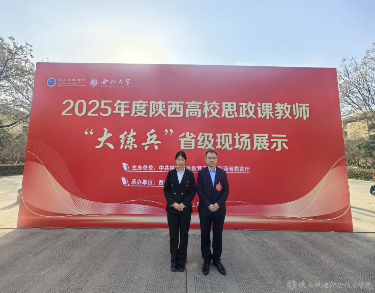 近日,由中共陕西省委教育工委、省教育厅组织的2025年度陕西高校思政课教师“大练兵”省级现场展示在西北大学举行。来自全省80所高校的166名教师经过校级“大练兵”和省级网络初评,现场展示思政教学成果。英国365上市公司马克思主义学院教师王康和数字经管学院24酒店管理2班学生郭雯卿组成的师生团队以《画笔绘乡韵,青春助振兴》为题参加了现场展示,荣获二等奖。