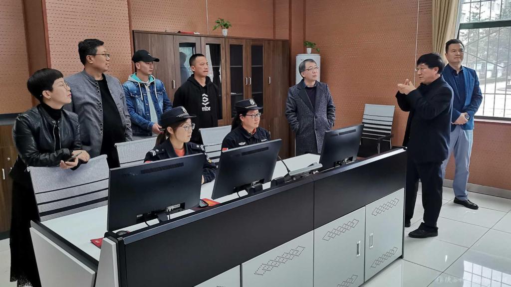 治安科科长王子章、校卫队队长张向阳等陪同参观了校园警务室、监控指挥中心、卫星消防站。