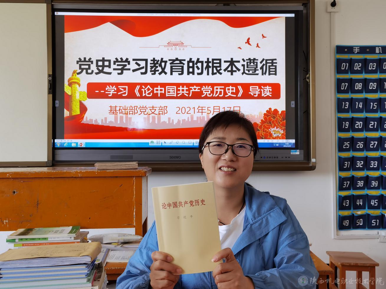 按照学院党委的安排部署,结合支部工作学习实际,为了更好地学习领会习近平《论中国共产党历史》这本书的精神实质,5月17日下午,基础部党支部在宝福路校区第一教学楼403教室召开党员大会,聆听中央党史和文献研究院副院长黄一兵同志导读《论中国共产党历史》。